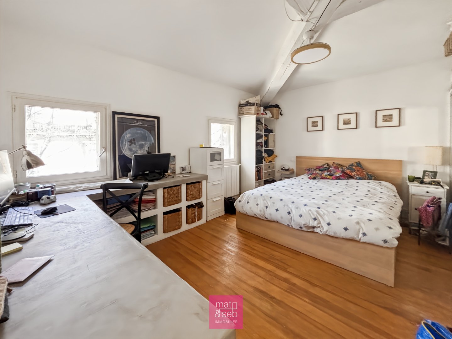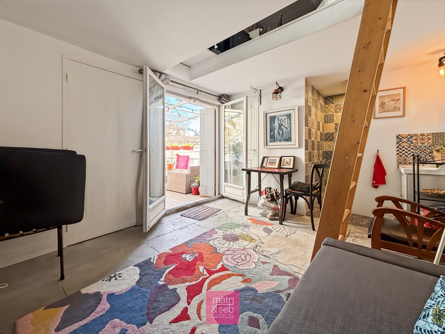 A top floor bathed in light, a 12 m² terrace with no overlooked views and a breathtaking view of the rooftops… This Parisian studio-style apartment is a true cocoon perched between Rue Foch and Sainte-Anne. Two bedrooms + an extra space, it feels like a little house on the roof. Magical!